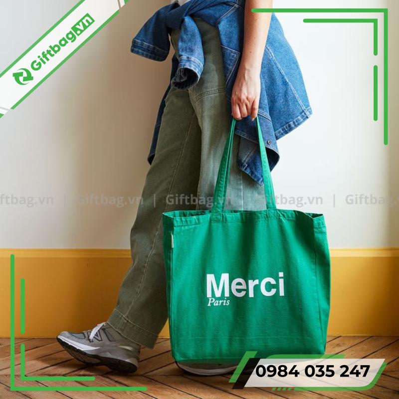 Ngày nay, xu hướng tiêu dùng hướng đến thời trang bền vững. Túi vải bố Merci không chỉ là phụ kiện tiện lợi mà còn thể hiện phong cách sống xanh, thay thế túi nilon truyền thống. Từ Hà Nội đến TP.HCM, nhiều bạn trẻ xem đây là lựa chọn vừa thời trang vừa ý nghĩa.