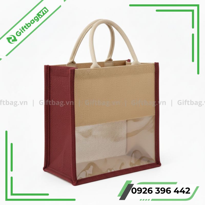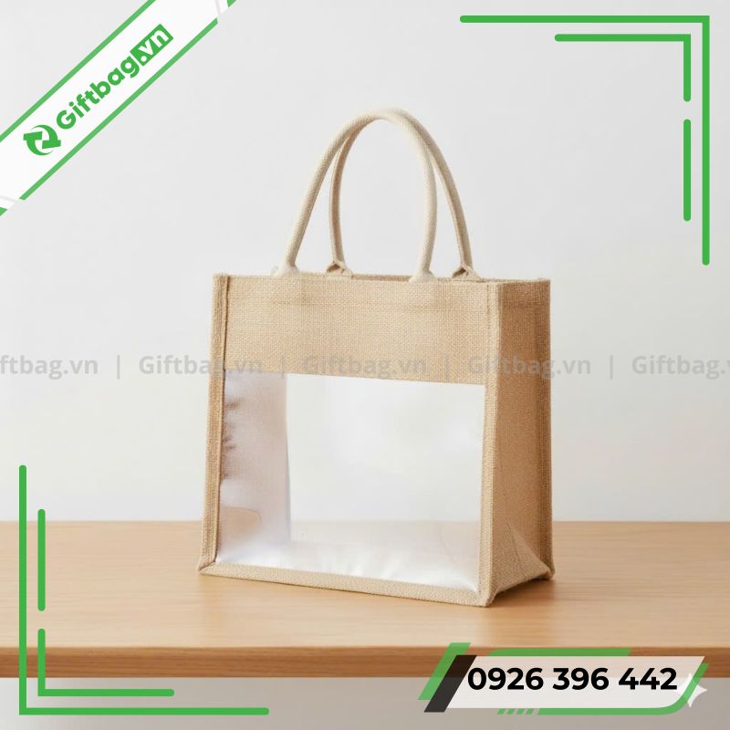 Túi vải đay phối trong suốt đang trở thành lựa chọn nổi bật cho các doanh nghiệp muốn sở hữu mẫu túi mang phong cách tự nhiên, sang trọng và ấn tượng. Chất liệu đay linen bền chắc kết hợp lớp nhựa trong suốt cho phép phô diễn sản phẩm bên trong một cách tinh tế, rất phù hợp làm túi quà tặng, túi sự kiện, túi bao bì cho ngành thời trang – mỹ phẩm.