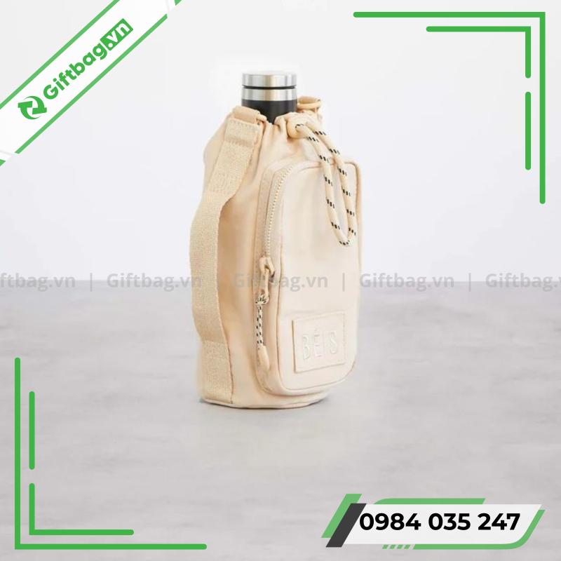 Sự tiện ích và đồng bộ trong thiết kế giúp túi vải đựng bình giữ nhiệt in logo trở thành một trong những quà tặng được ưa chuộng nhất hiện nay.