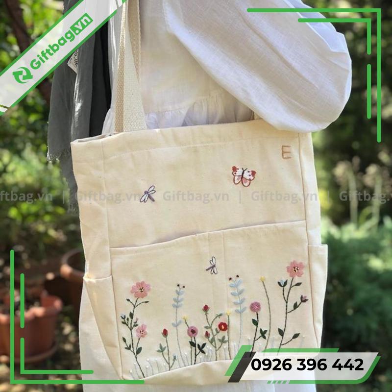 Mẫu túi canvas thêu hoa